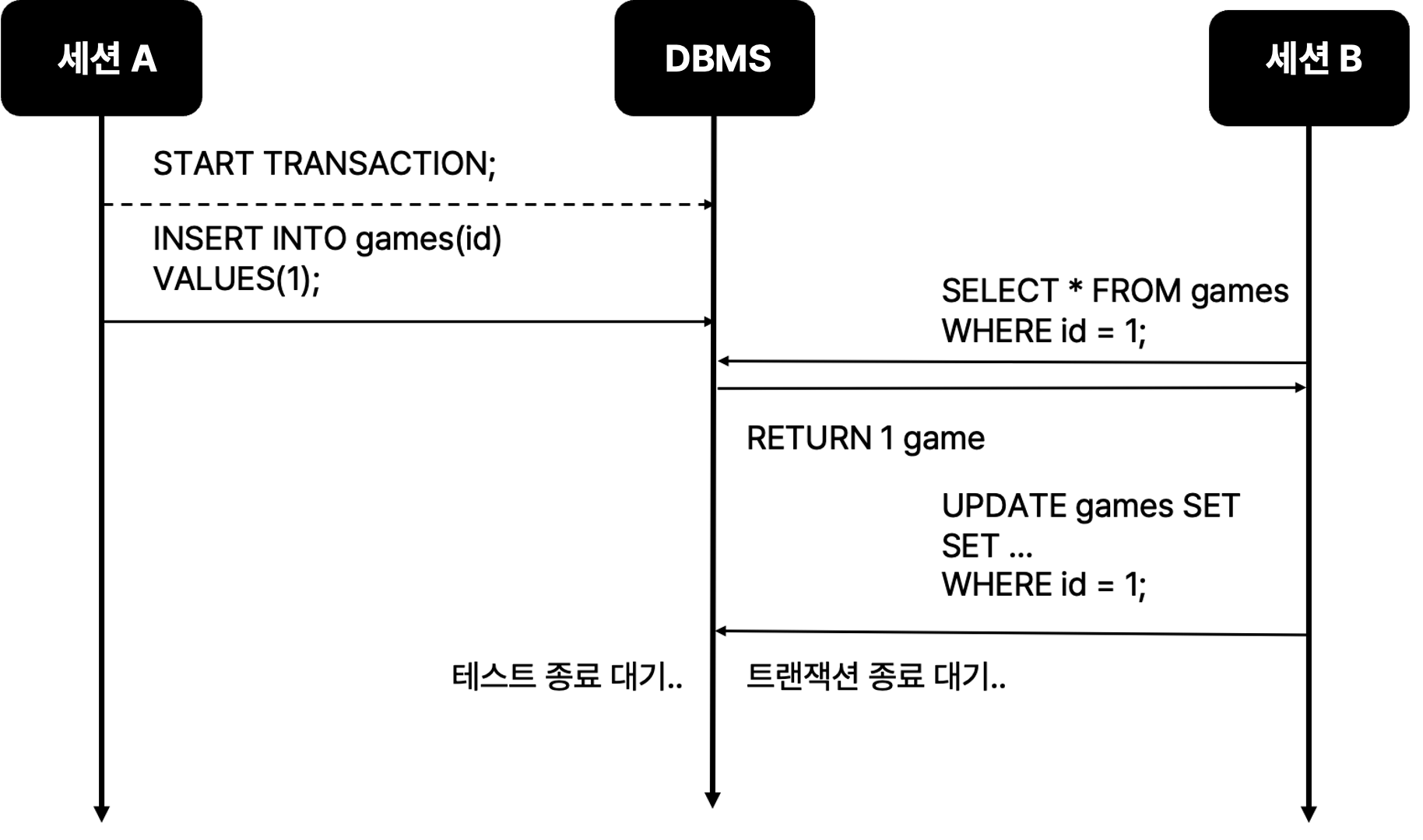 await factory.save(GameMother.createGame()); // ❗ 지맘대로 트랜잭션 생성하고 커밋