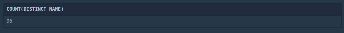2. COUNT(DISTINCT NAME)으로 NAME열에 중복이 되지 않는 경우에 갯수를 셉니다.